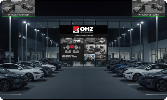 Your staff and customers deserve to feel safe, both late at night and during busy service hours. OHZ monitors showrooms, service bays, and outdoor areas around the clock, ready to intervene at the first sign of a problem. If a disturbance or medical issue occurs, our team alerts management or first responders immediately so no emergency goes unanswered.