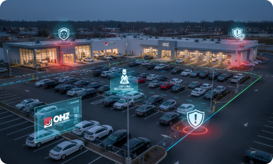 OHZ closes these gaps with AI-powered monitoring and live remote guards who watch your lot continuously, verify threats in real time, and trigger deterrents before damage occurs.