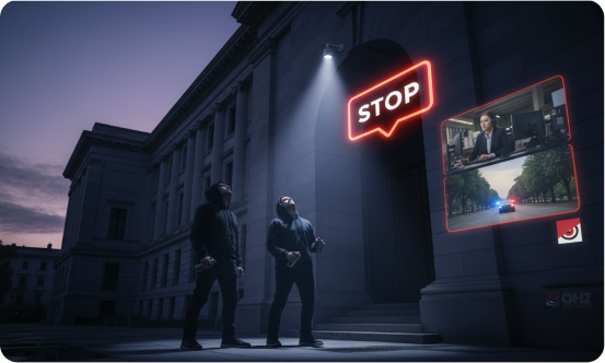 OHZ integrates with your existing systems or installs new surveillance to monitor entrances, perimeters, and public spaces, protecting staff, visitors, and valuable assets.