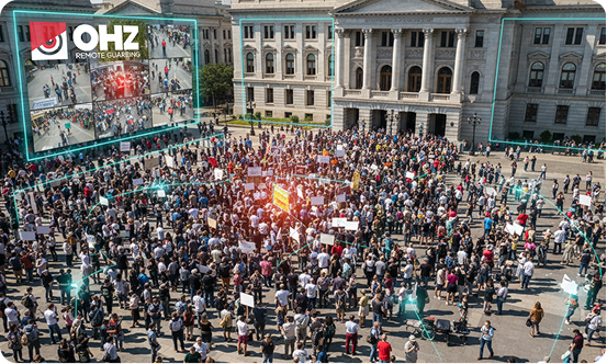 Government properties may draw large crowds in the form of rallies, press events, or community demonstrations. When energy turns unpredictable, situational awareness is crucial. Our remote guards maintain visibility across gathering zones, spot unwanted behavior early, and alert on-site teams or police before situations get out of hand.