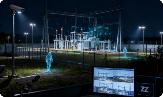 Conventional security methods struggle in that environment. Wide, unlit perimeters make patrols difficult, and standard alarms can’t distinguish between an animal, a storm, or a real threat. Even minor incidents—like copper theft or vandalism— can damage high-voltage equipment, trigger outages, and cost millions to repair.